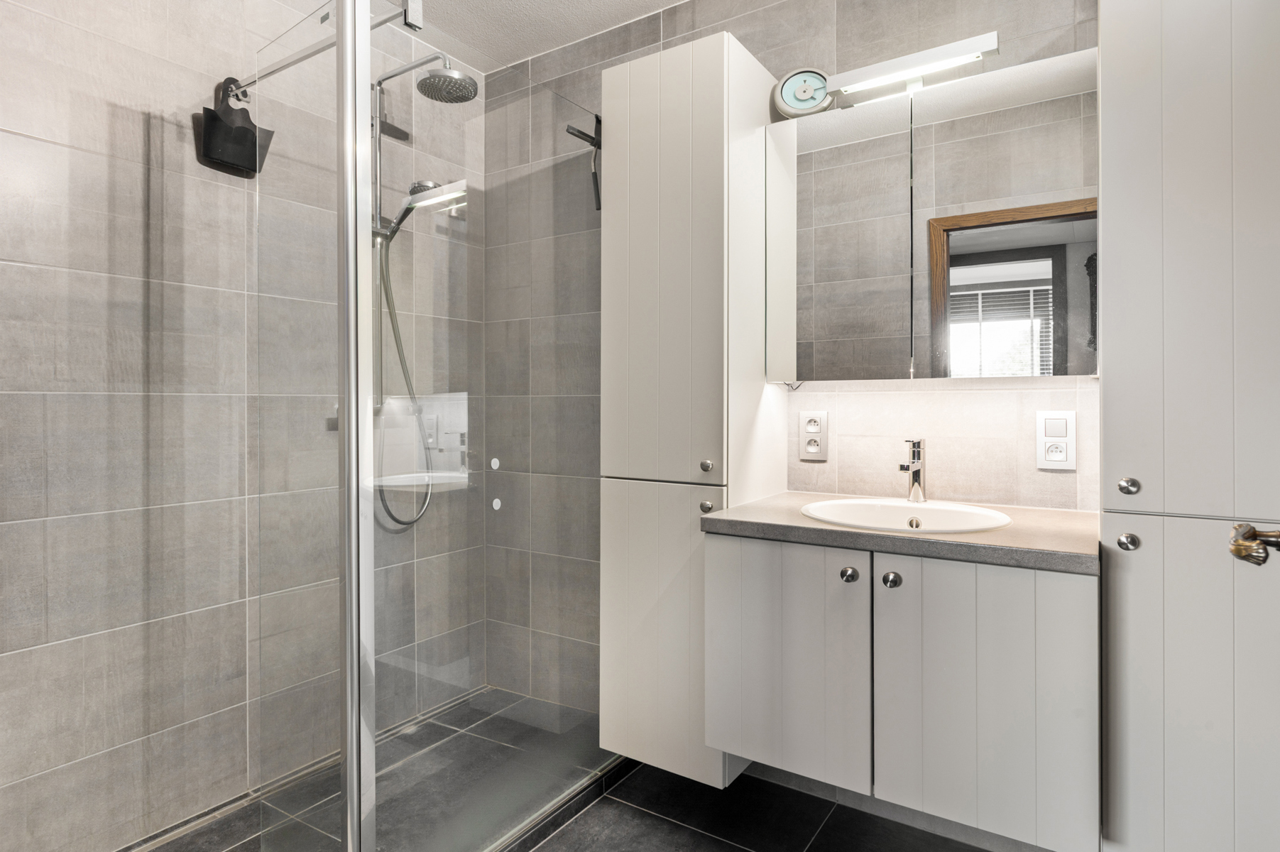 Men komt binnen via de inkomhal die werd voorzien van een handige vestiaire. Aangrenzend bevindt zich de lichtrijke woonkamer die geniet van een heerlijk ruimtelijk gevoel dankzij de riante raampartijen. De keuken werd praktisch geïnstalleerd met een gasvuur, oven, dampkap, dubbele spoelbak en vaatwasser. Daarnaast tel je hier 2 slaapkamers (15 m² & 12 m²) en een moderne badkamer welke werd uitgerust met een lavabo in meubel en douche. Bovendien bieden het apart toilet en de berging met aansluitingen voor was- en droogmachine extra comfort. Tot slot, maken de 2 terrassen (beide 6,70 m²) met uitzicht op een prachtige, groene omgeving het plaatje compleet!