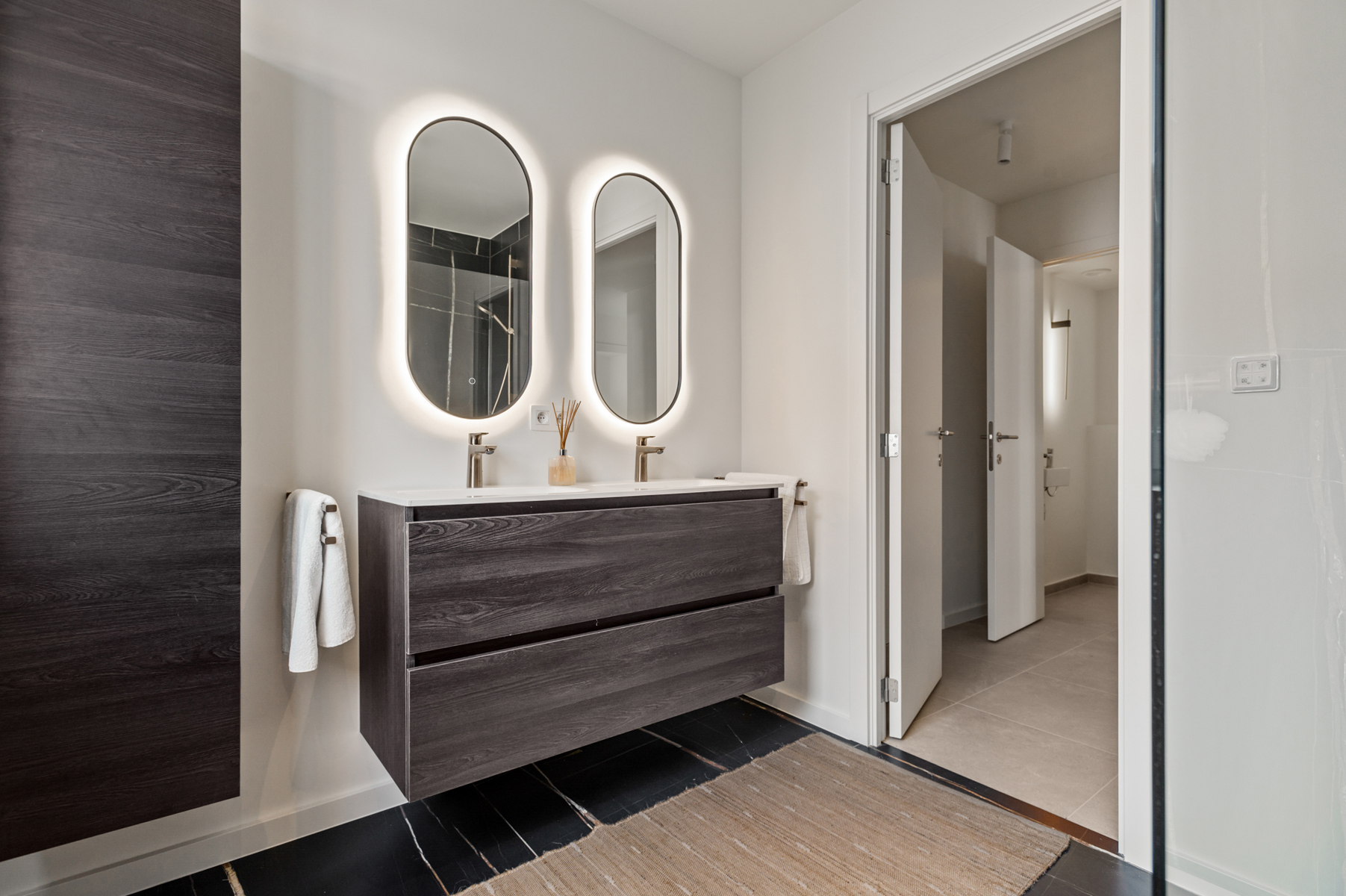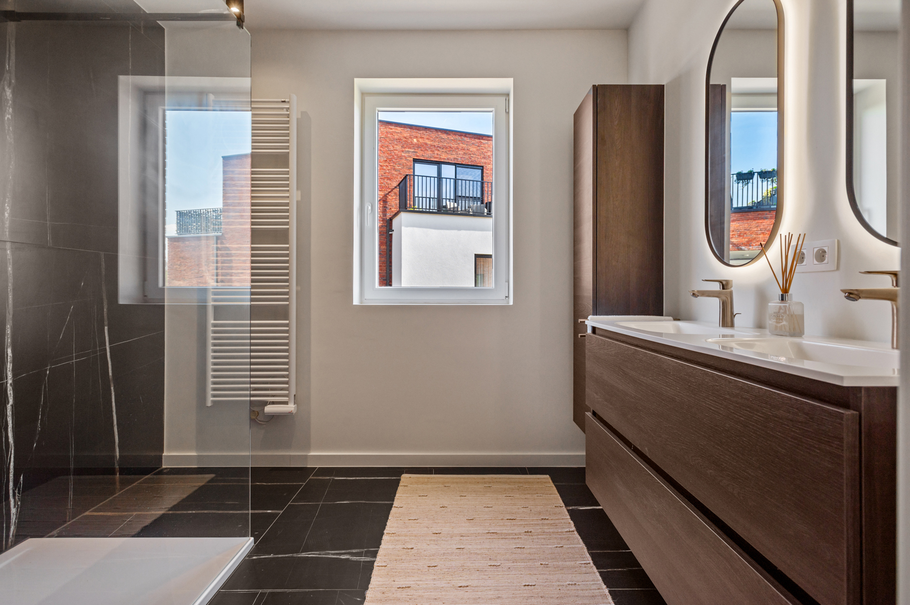 Wonen waar rust en comfort hand in hand gaan – welkom in Residentie ’s Grevenhof! In dit luxueuze appartement gebouwd in 2023, geniet je van het beste van beide werelden: de pracht van groen en water in de Rupelvallei én een vlotte verbinding met het stadsleven. Perfect voor wie houdt van natuur zonder in te boeten op bereikbaarheid! Je betreedt het appartement via de inkomhal voorzien van een ingebouwde vestiaire, een gastentoilet met handenwasser en een handige berging met aansluiting voor je was- en droogmachine – alles werd strak en functioneel ingericht! Daarnaast is de royale leefruimte een echte eyecatcher: het overvloed aan daglicht dankzij de grote raampartijen creëert een warme en ruimtelijke sfeer, en dan hebben we nog niet eens gesproken over de open keuken! Deze werd geïnstalleerd met de meest hoogwaardige materialen en steelt ook nog eens de show met zijn strakke, klassevolle look. Bovendien stap je via een schuifdeur zo het knusse terras op waar het heerlijk vertoeven is met een uitkijk op de rustige, gezellige woonwijk. De 2 comfortabele slaapkamers (12 m² & 10 m²) en de trendy badkamer met haar ruime inloopdouche, dubbel lavabomeubel en handdoekradiator maken het plaatje compleet. Kortom ademt dit appartement een harmonie van stijl, genot en hoogwaardige afwerking! Word jij de trotse eigenaar?