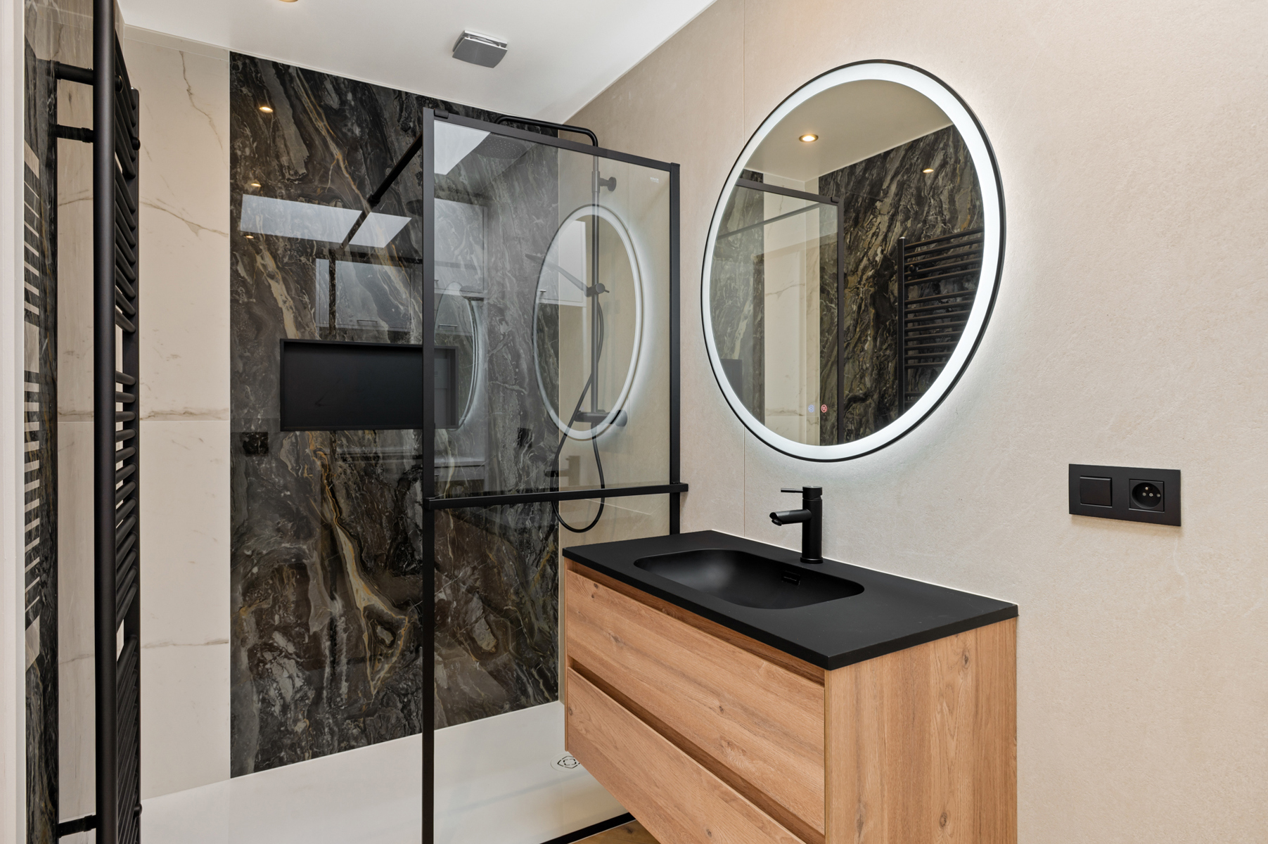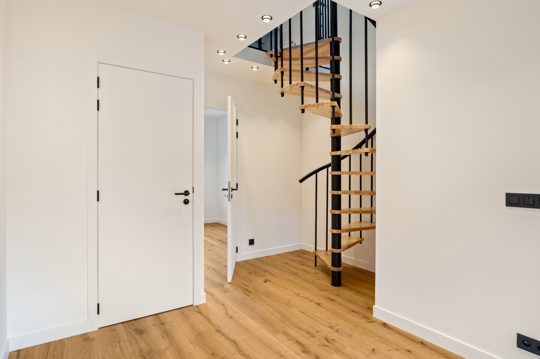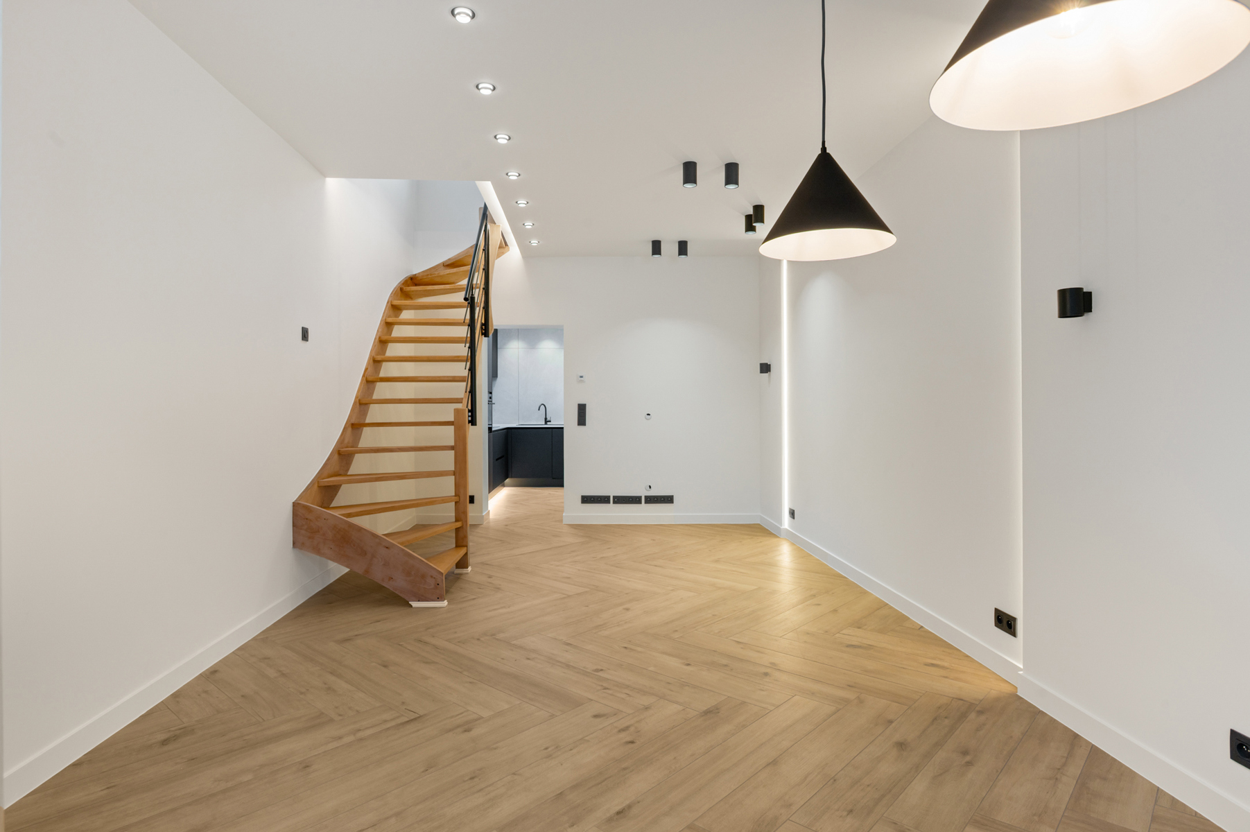 Je komt binnen in de riante leefruimte die werd voorzien van een prachtige visgraatvloer met aangrenzend de moderne keuken die geniet van een prachtig design met warme houttinten en stijlvolle muurtegels. Verder heb je hier een prachtige badkamer met een ruime inloopdouche, lavabo in meubel en handdoekradiator en toilet – dit alles met een zorgvuldige afwerking en mooie, zwarte accenten. Op de eerste verdieping bevinden zich 2 slaapkamers van maar liefst 11 m² & 6,8 m², de draaitrap leidt je vervolgens naar een polyvalente ruimte van 17 m² die je perfect kan benutten als 3de slaapkamer, werkruimte of kamer voor jouw geliefde hobby’s!